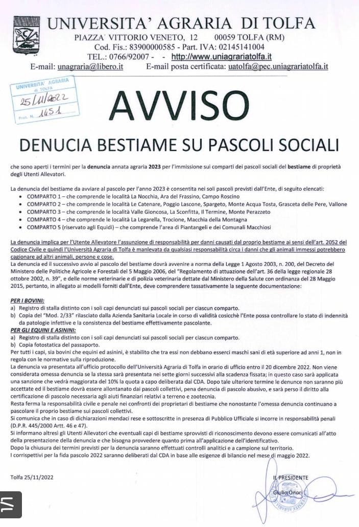 DENUNCIA BESTIAME SUI PASCOLI SOCIALI 2023